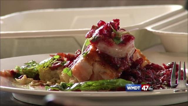 blacksmith bar and restaurant is an upscale place that’s both edgy and quaint…where the chefs clearly know how to make food great! if you’re a foodie who thinks a little extra goes a long way…this is your spot. track 1- blacksmith bar and restaurant opened 2 years ago this march. it’s an offspring of planet x, which was in rehoboth. owner and chef justine zegna says she loves being in berlin and providing a different kind of dining experience. 23:11:03- 23:11:21 we’re sort of a neighborhood restaurant. we do what we call down home eastern shore but with a global flare. we do whatever we feel like doing and what our customers want. we do vietnamese, thai, italian and whatever we want with an eastern shore influence on it track 2- chef says they believe in the farm to table concept. in fact, she says she’s been practicing that philosophy for 20 years. 23:11:40- 11:53 we do try to keep it like original eastern shore cooking. what’s around us and what we can get and try to stay seasonal but we like to spice it up as well track 3- when she said spice it up… i had no idea what was about to happen. with chef justine and chef tracey…class was about to be in session. 23:12:18 – 12:25 we got some really beautiful salmon. we’re doing it off the cuff with some mise en place. we kinda prepared stuff. we have some great figs. 23:12:30-12:32 we’ve got some cranberries that are fresh track 4- while talking about the fresh ingredients and prep work involved for our meal, chef also offered a kitchen insider tip… 23:12:35- 12:40 part of being a great chef is using your knife skills so put the food processor away, get your knives and cutting boards out. track 5- this was feeling like a wonderfully organic cooking session with a lot of technique tips. in addition to our beautiful piece of salmon, there was a nice risotto. the risotto, i’m told, is typically done ahead of time, cooled and finished in a pan. chef tracey started that finishing process with some garlic oil, roasted garlic and butternut squash. while chef tracey worked on that, chef justine started a chutney by adding some duck fat to the pan. 23:15:01- 15:07 a chutney typically is a fruit, a spice kind of savory and it’s also called a relish track 6- our quick chutney included scallions, hand chopped cranberries, fresh ginger, dried figs, dried cranberries, golden raisins for a chewy texture and a sweetness. she added fresh thyme and a yummy habanero strawberry jam and a red wine vinegar to add an astringent quality. honey was the last ingredient. 23:18:00- 18:06 you got a lot of complex flavors here. not going to cook it too long track 7- next—the salmon on the flat top… 23:18:30- 18:42 the secret is keeping that on the flat top for a couple of minutes to cook it to medium rare. with protein, put them on something hot, use a good amount of fat and leave it alone track 8- we were getting there, so chef tracey started our plating process which included some fancy garnishes 23:19:17- 19:34 we’re using micro greens grown hydroponically in salisbury, some basil, a beautiful garnish and some organic arugala pesto track 9- towards the end, chef heated some shrimp and added that –along with some veg stock– to our chutney and finished off the salmon. meanwhile… 23:23:10- 23:23 i’m going to take a little pesto, put it on the plate and smear. it gives another something to taste and savor along with your food track 10- he added a couple of dots of strawberry jam while chef justine scooped some risotto onto the center of the plate, and placed the salmon and chutney on top of that. then it was time…. 23:26:28- 26:35 it’s like an explosion in your mouth with so many flavors 23:27:43- 27:50 i just got a bit of strawberry jam and it’s so good with all the other flavors it was a great showing of how simple upscale and fresh cooking can be and not difficult. they cooked that meal in about 15 minutes. and it was so delicious. the flavors really did come together well and most of the ingredients are things i know i have in my refrigerator or pantry right now. so definitely check them out. and berlin restaurant week would be a good time to do that. they’re located on pitts road in berlin. restaurant week is coming up january 11th – 17th. and join us next week for another great round of cooking in kitchen insider. stay tuned… more news