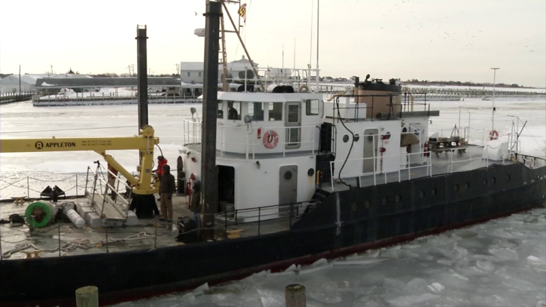 (AP) – With the ice building around Smith Island and Crisfield, the Maryland Department of Natural Resources dispatched its ice cutter to help.