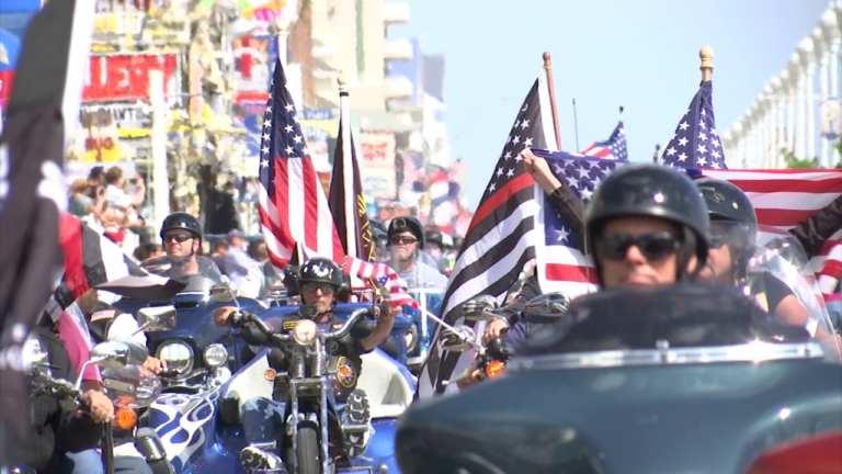 Monday, under a blue sky, the Red Knights of Maryland lined the Ocean City boardwalk, and just like they have for 13 years, they held their flags high to commemorate and honor those who lost their lives 16 years ago.
