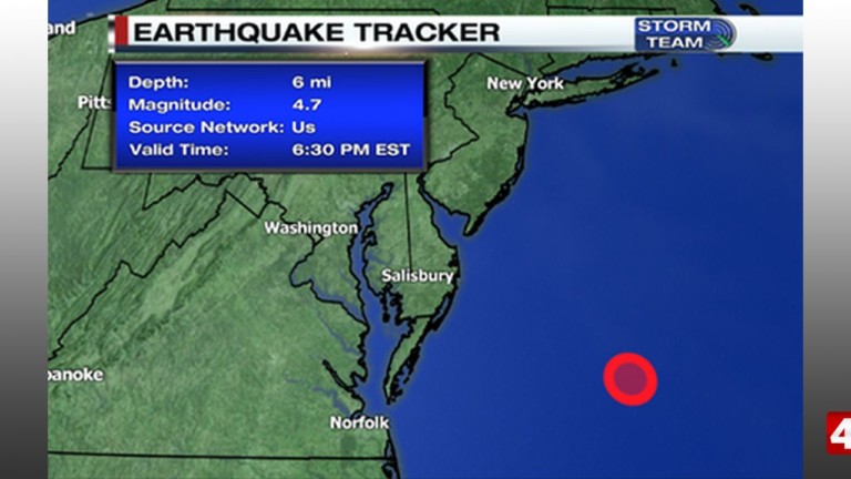OCEAN CITY, Md.– According to the United States Geological Survey, a 4.7 magnitude Earthquake was reported off the coast of Ocean City Tuesday night.