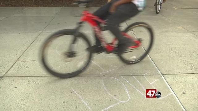 Students write in chalk about political opinions around campus at local university